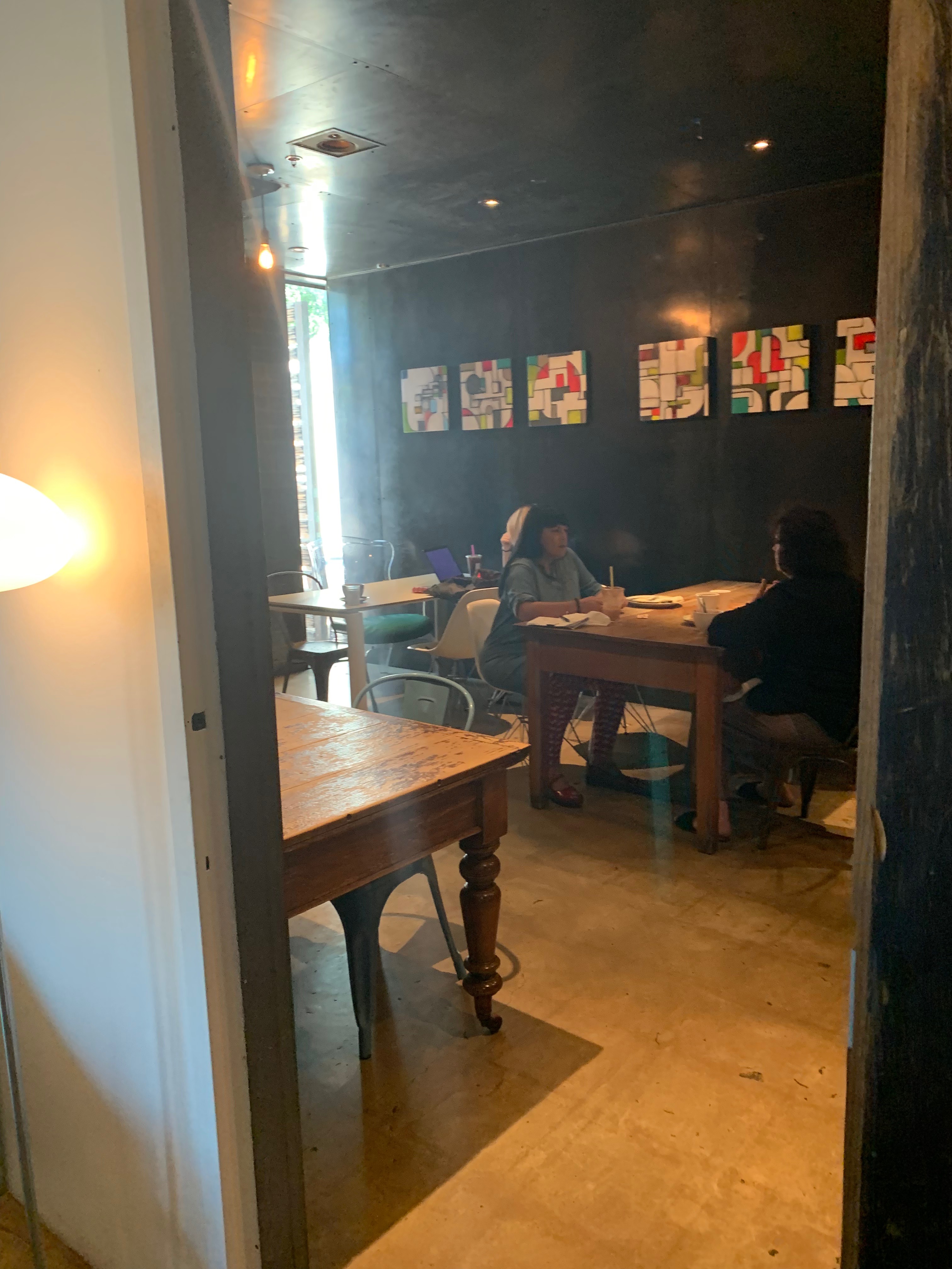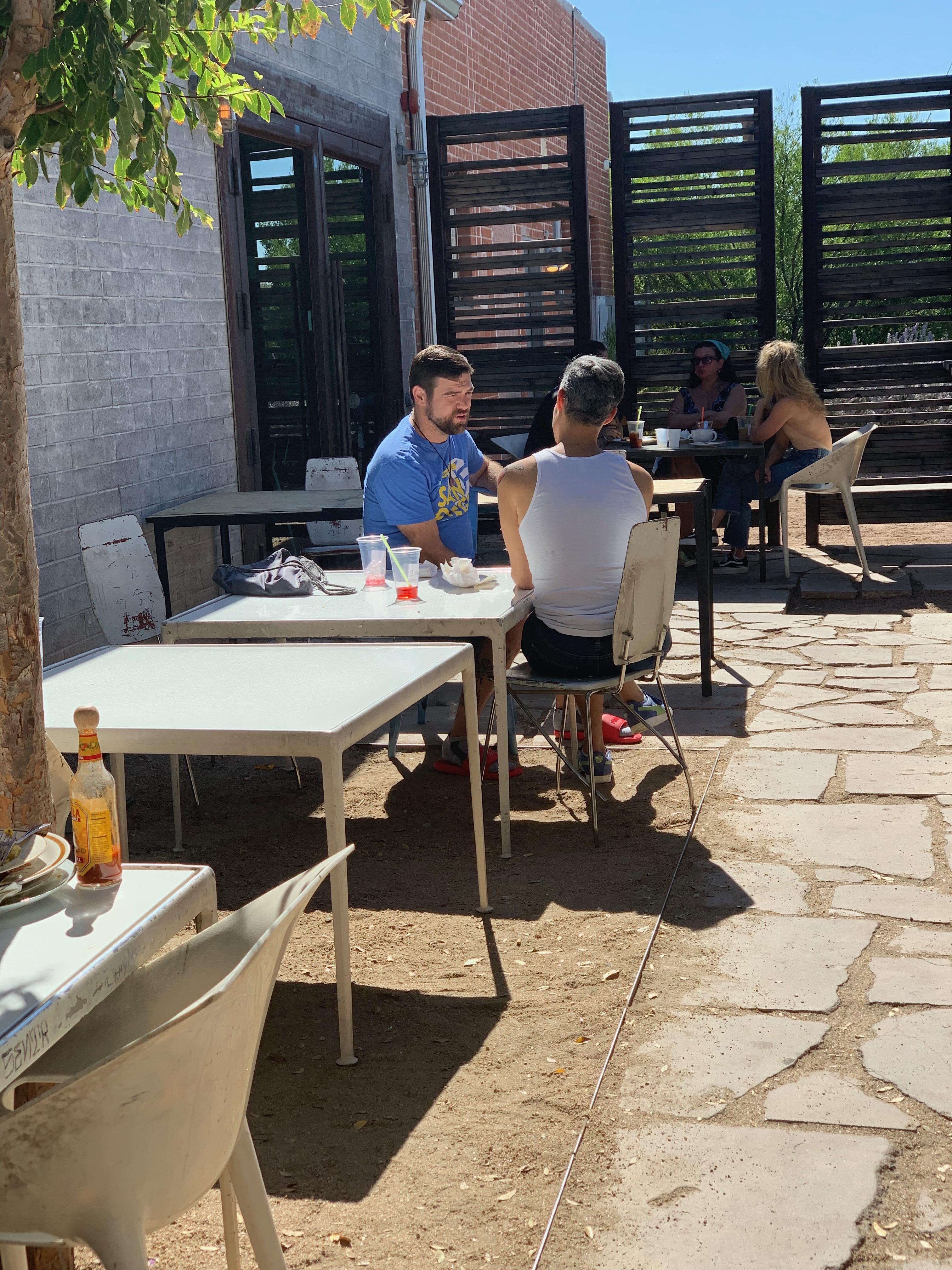 As we waited in line, we noticed that the seating was limited because everyone in Phoenix was at Lux Central that morning. There were four of us, so we strategically scoped out where we could squeeze in. Donāt be opposed to sitting with another person or two, everyone seemed friendly enough and knew this may happen at Lux. There were many pockets of casually clustered seating all over the building and an outdoor seating area as well. We luckily discovered a space for four and grabbed it.