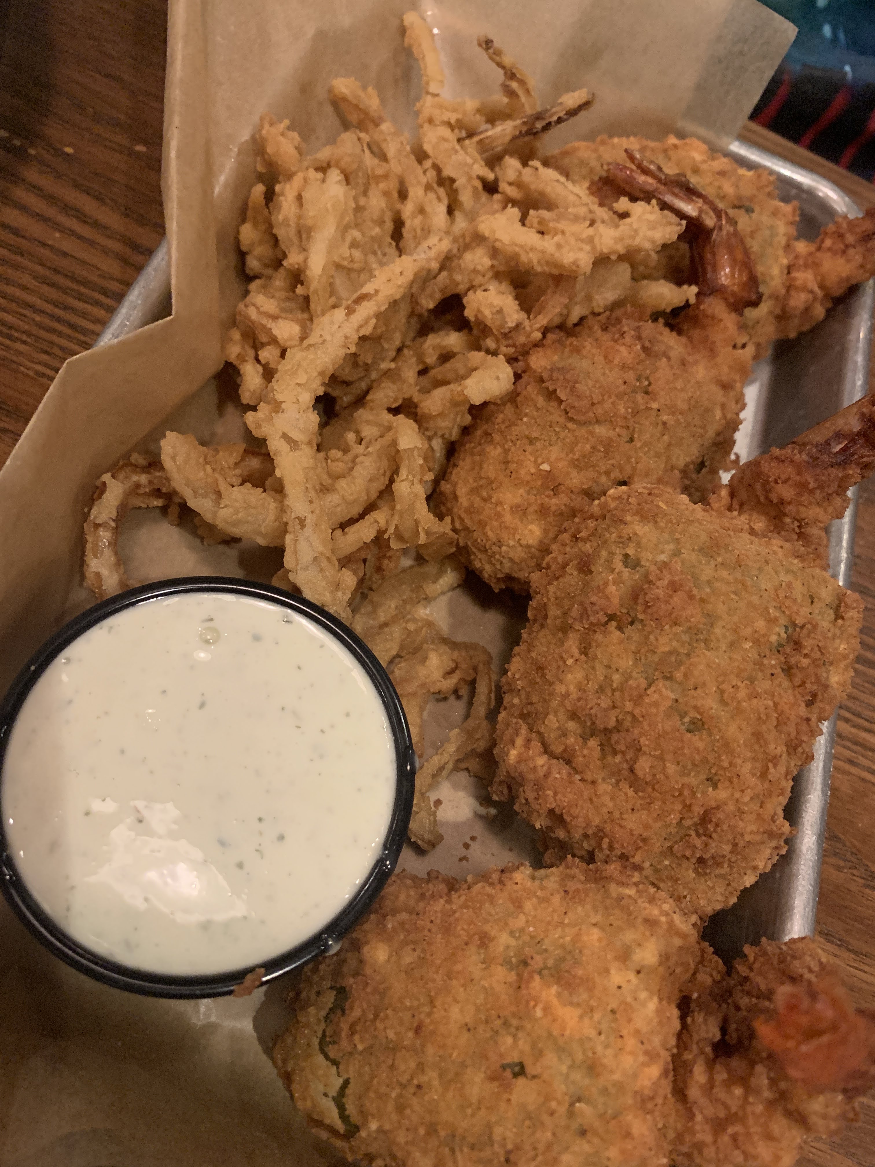 Now, let’s talk about the jumbo jalapeños stuffed with shrimp and jack cheese. Fried to a golden brown. Served with ranch dressing. That is Salt Grass’ description, no need to be altered. For the folks that may be steered away from the fact that they are technically jalapenos, but they are not spicy, at all. We ordered 3 and ordered 3 more, they were THAT good. Just get them, and just get the order of 6 at the beginning. Don’t play yourself.
